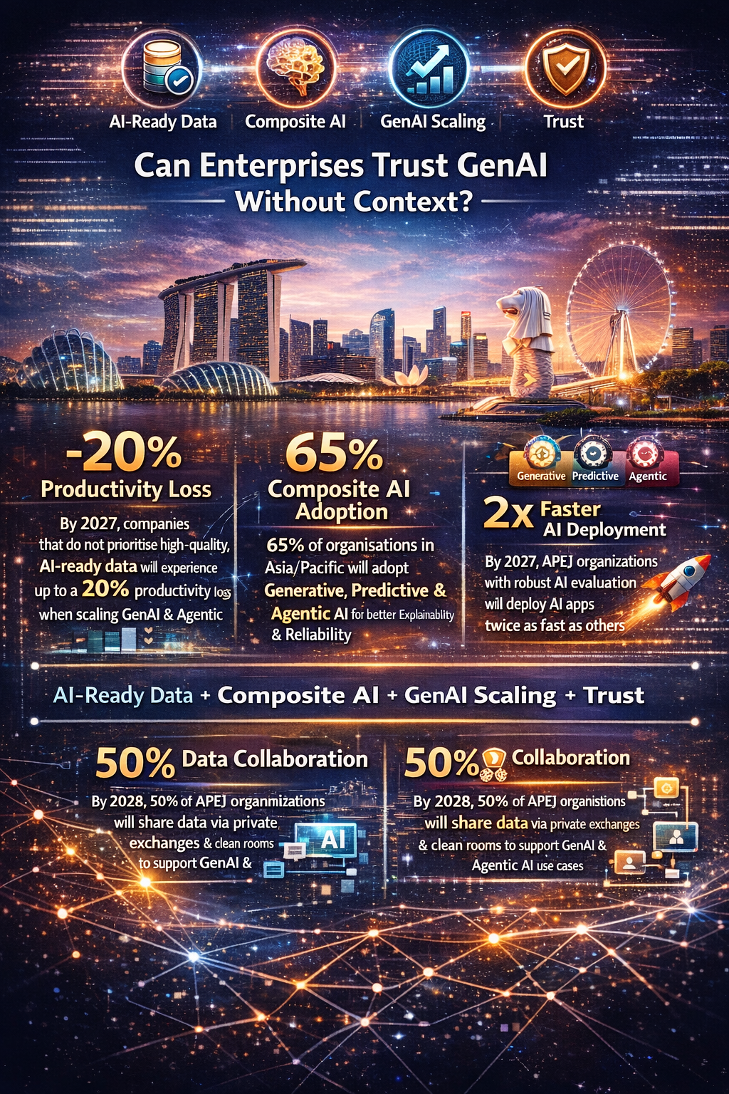 IDC research indicates that by 2027, companies that do not prioritize high-quality, AI-ready data will experience up to a 20% productivity loss. At the same time, 65% of organizations in Asia/Pacific are expected to adopt composite AI approaches combining generative, predictive, and agentic capabilities to improve explainability and reliability.
